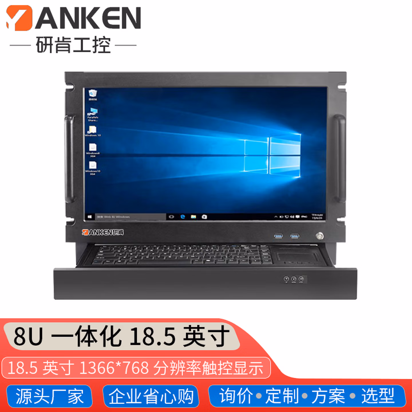 | 前置接口 | 开关键,LOG0可中性出货,18.5英寸1366*768触控屏,嵌入式键盘,触控鼠标,隐藏式电动键鼠,2*USB2.0 | ||