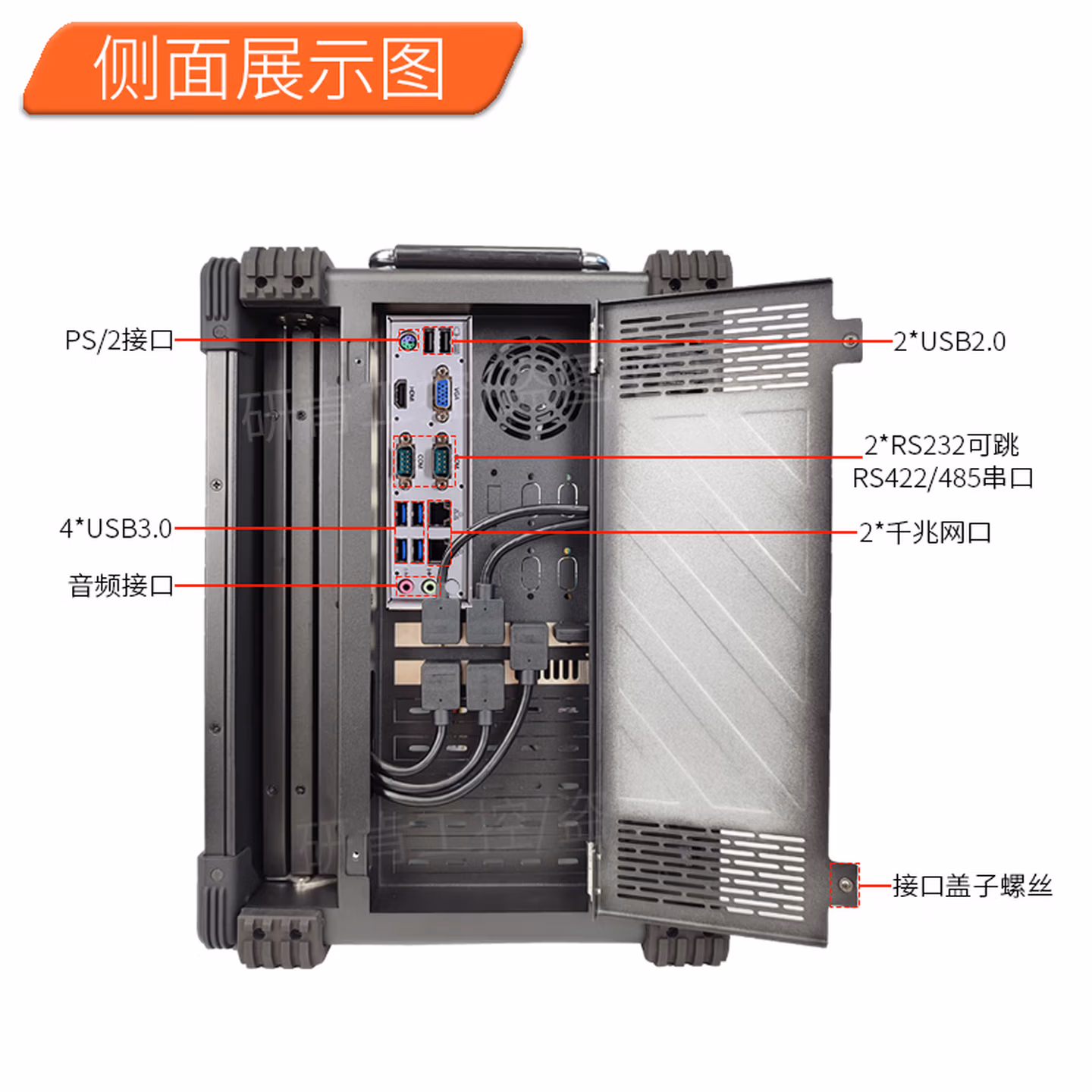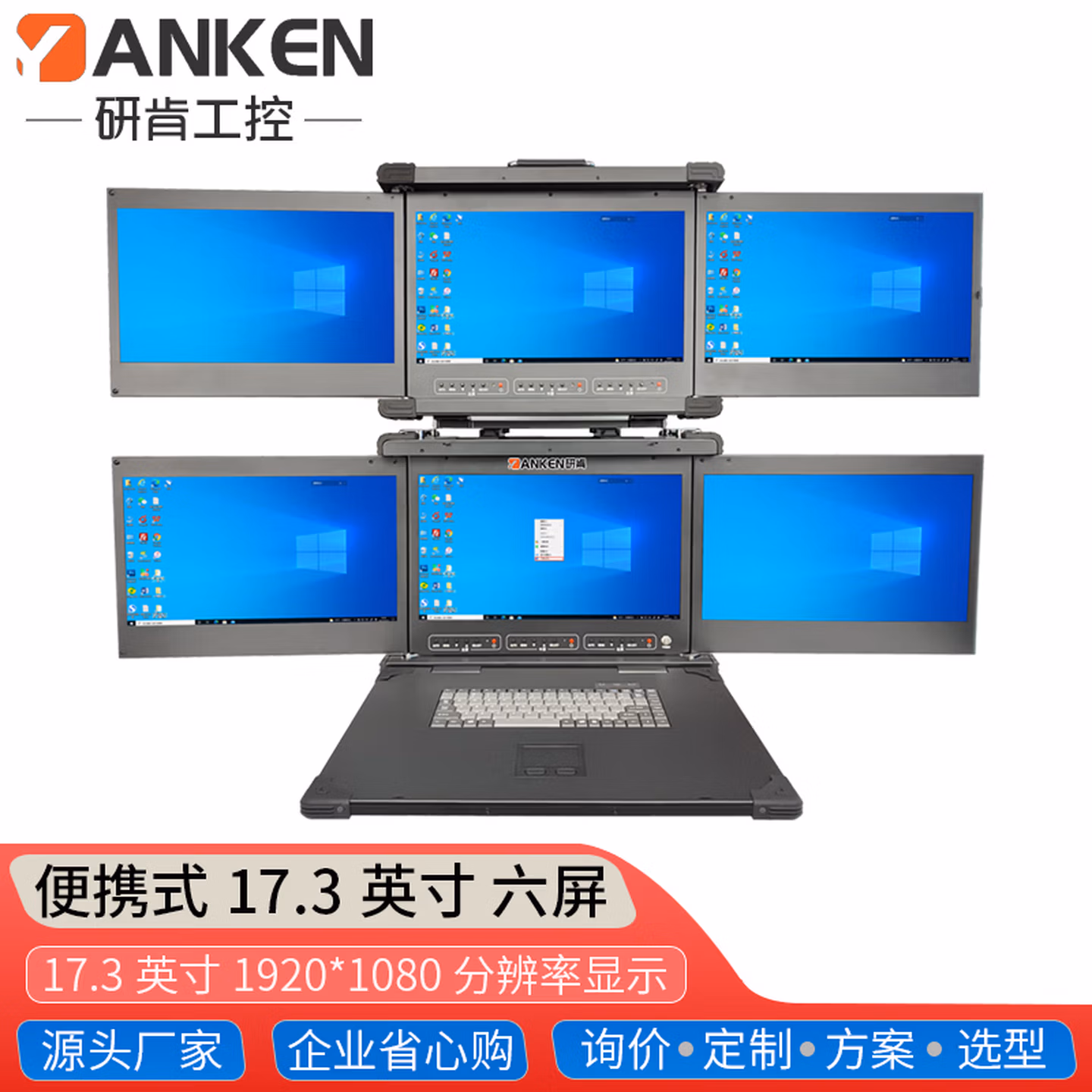 | 后置接口 | 2*千兆网口,2*USB2.0接口,4*USB3.0接口,前置六屏17.3英寸显示接口2*COM口,音频接口,电源供电口(可定制内置电池) | ||