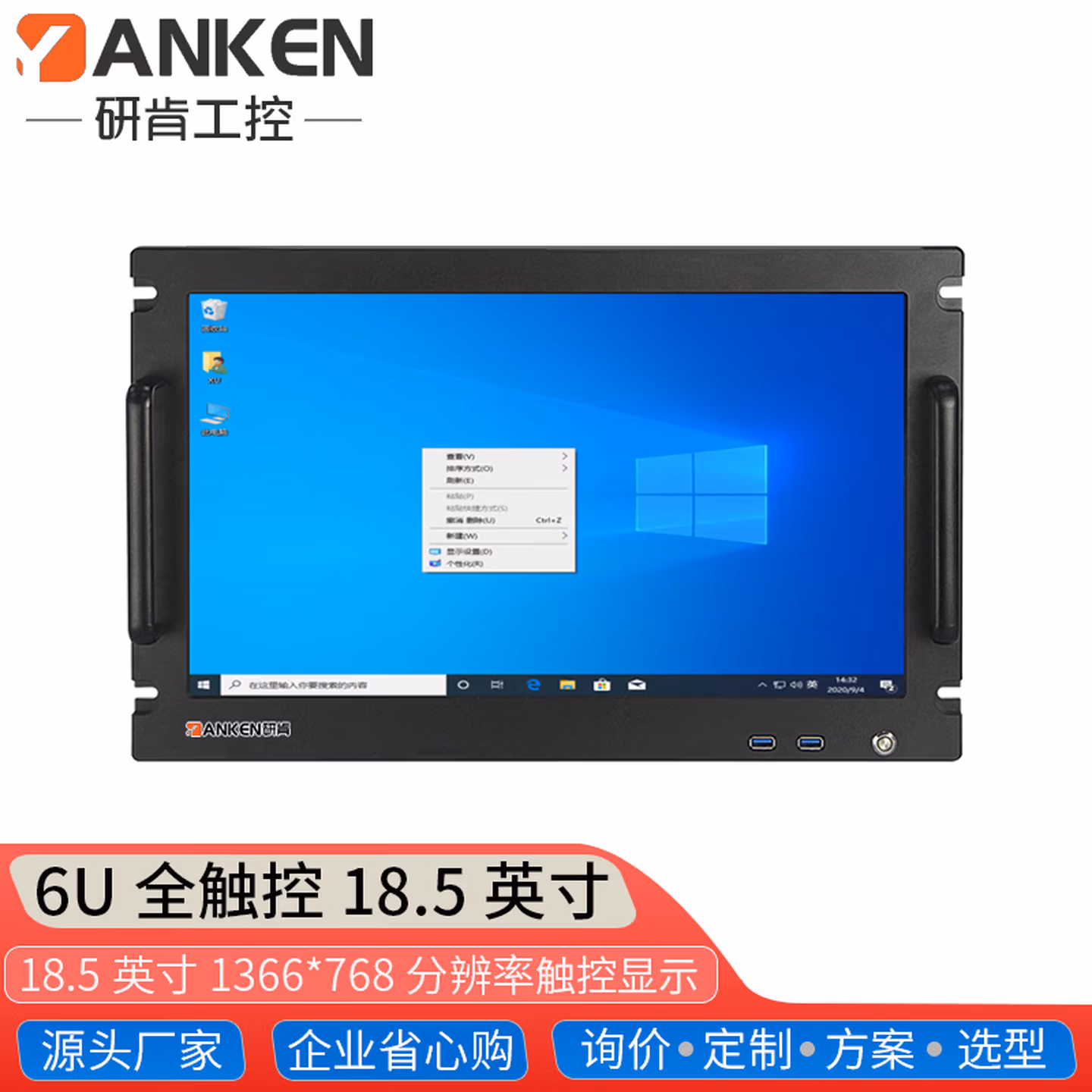 | 前置接口 | 开关键,LOGO可中性出货,18.5英寸1366*768显示屏,2*USB2.0,重启键,87键键盘,触控鼠标,2*热插拔硬盘位,笔记本光驱位,手柄可拆卸 |