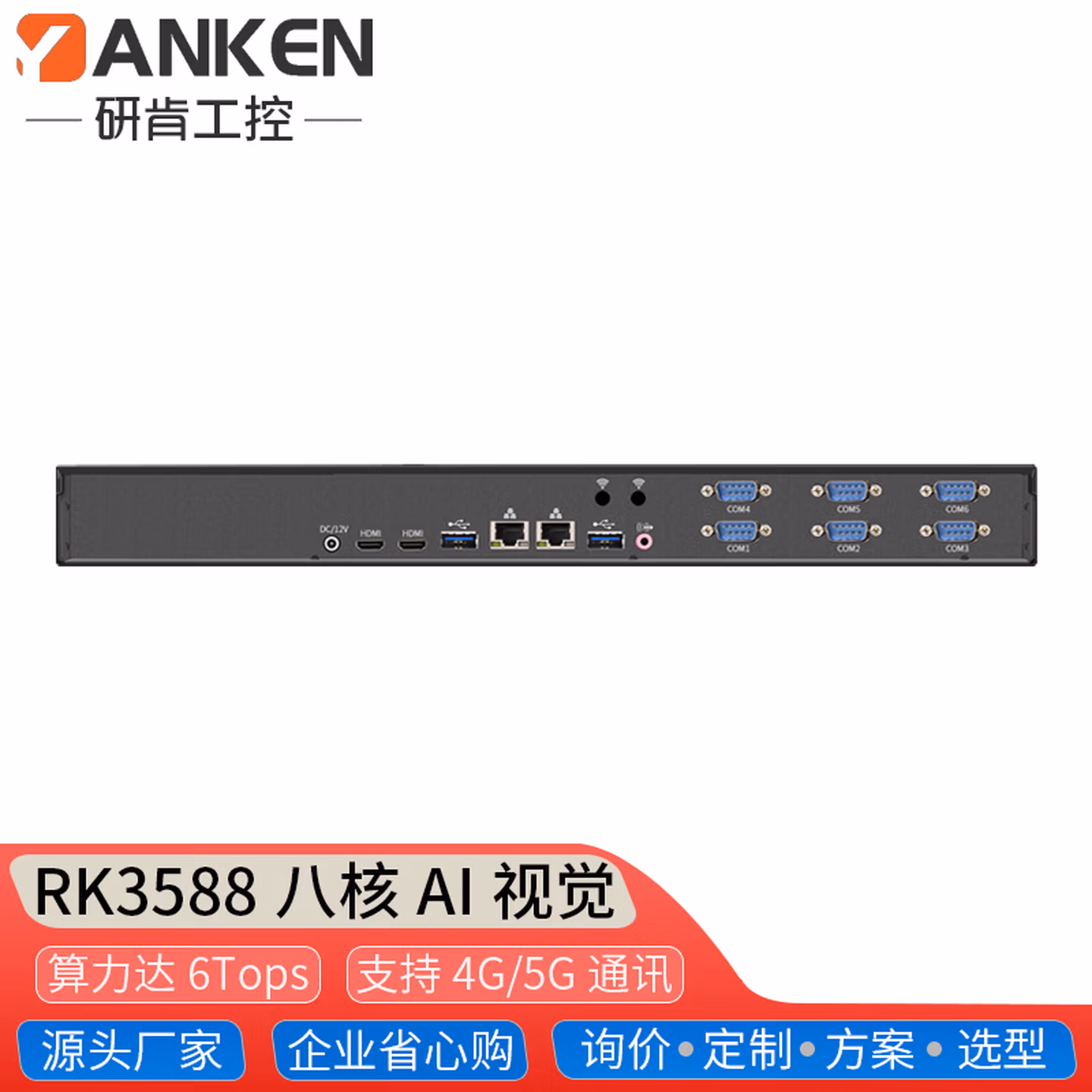 | 后置接口 | DC/12V供电,HDMI+HDMI显示,2*千兆网口,2*USB3.0,音频接口,wifi扩展口,6*RS232串口 |