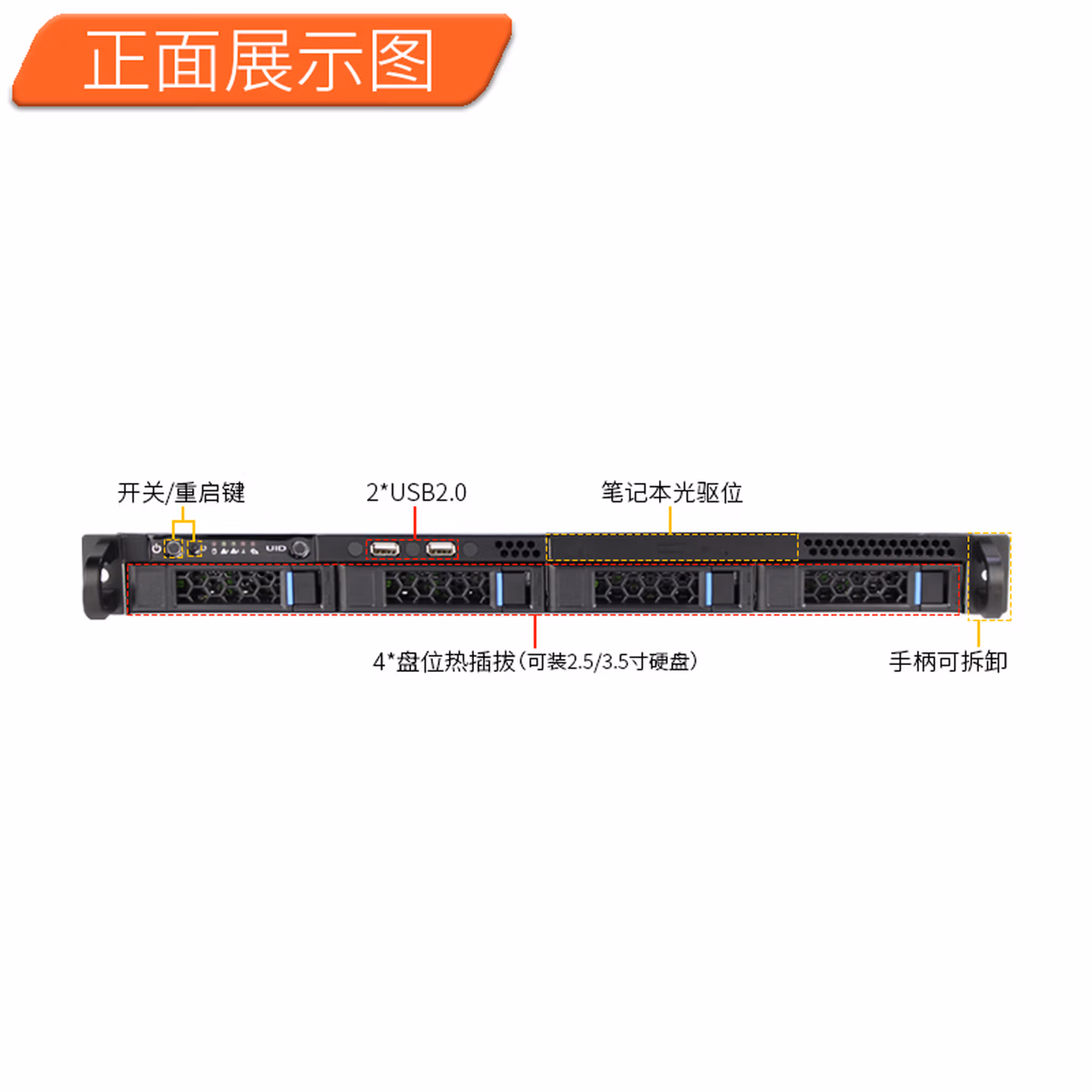 | 前置接口 | 开关键,重启键,2*USB2.0,笔记本光驱扩展位,4个热插拔硬盘位,耳朵可拆卸 | ||